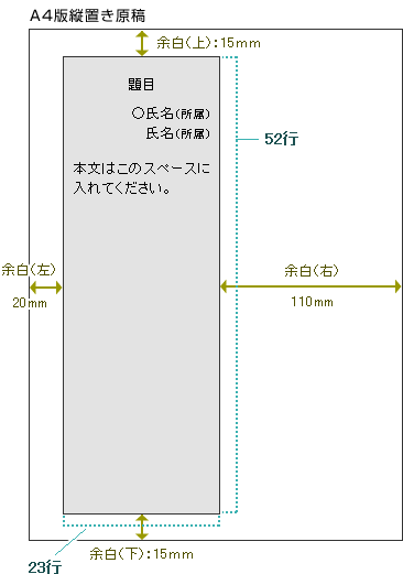 - 字数は「題目」と「発表者」を含めて23字×52行以内に収めてください。